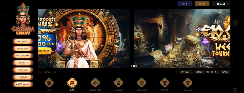 Established in 2017, Cleopatra casino has become the most enticing online gaming oasis overnight. With the unique atmosphere of immemorial Egypt, the shady secrets of Bitcoin betting and consistently extending game catalogs, there is no surprise why everyone who signs up for this platform, literally falls into the real money pythagorean revels.
