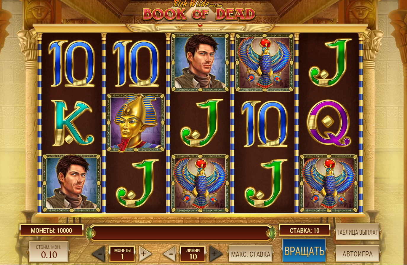 The Book of Ra is the wild and scatter at the same time. Three or more Book of Ra’s will trigger 10 free spins with a special expanding symbol. A special expanding symbol is randomly selected at the beginning of the free spins. After the payout of regular symbols is made, the special symbol expands to cover up to 3 positions on a reel and pays like a regular symbol but also even on non-adjacent positions and on all lines played.